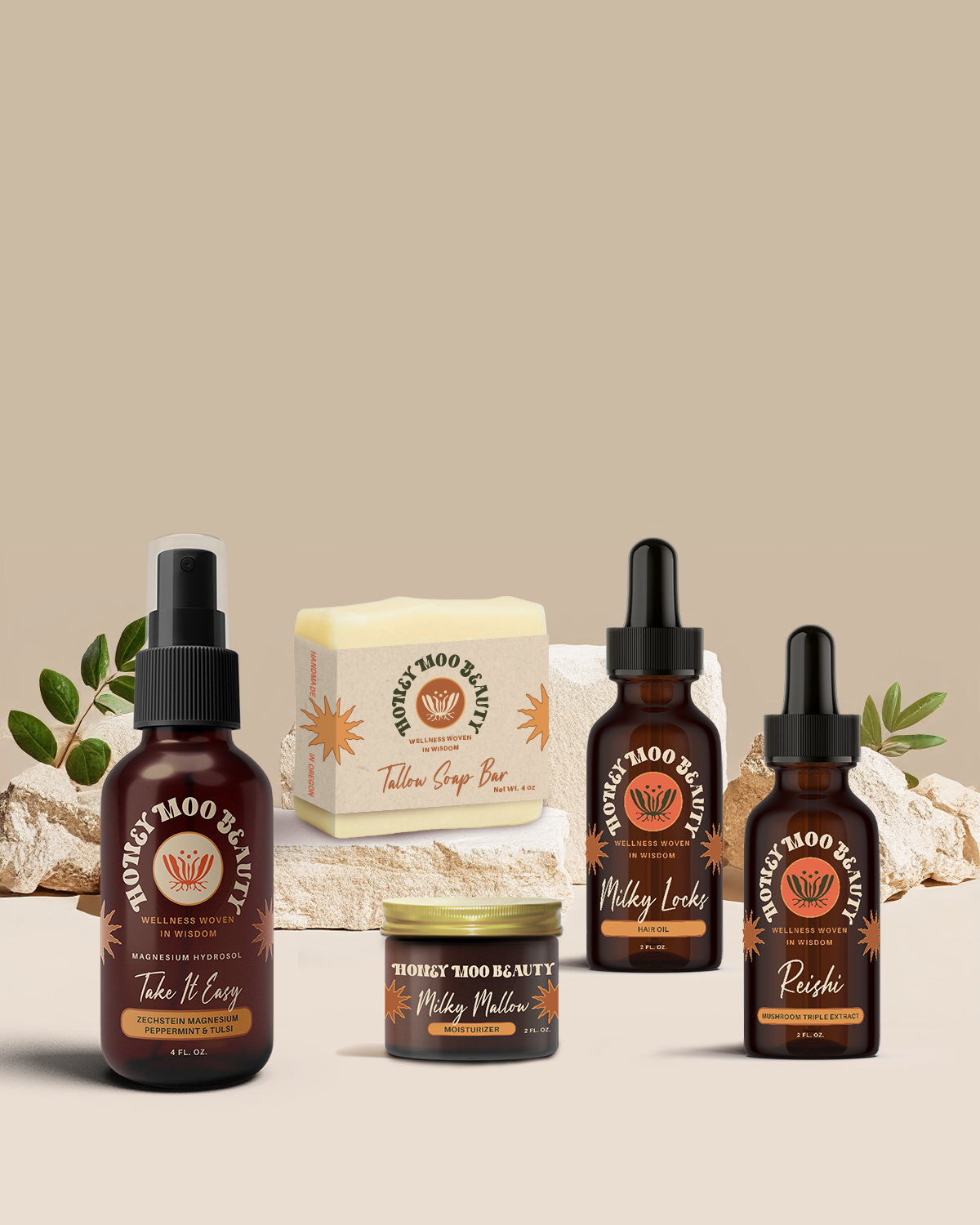 This curated motherhood collection has all the essentials for pregnancy and postpartum mamas! Replenish your minerals with our triple extracted reishi mushroom. Reishi has been known to improve sleep, reduce stress and contain anti-inflammatory properties. Unwind with a concentrated magnesium spray that promotes a restful night of sleep while easing aches, pains and cramping! The Milky Mallow moisturizer can be used as a nourishing belly butter to improve elasticity and stimulate skin cell growth. And let's not forget about supporting postpartum hair growth with a potent hair oil that increases circulation within the scalp allowing for abundant growth! Nourish your little ones delicate skin with a 100% regenerative grass finished tallow bar. One simple ingredient without all the unnecessary additives.
