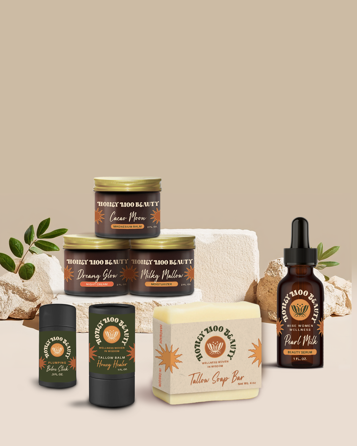If you're a lover of all things tallow this is the bundle for you. It contains all of our tallow creams, balms and moisturizers. This collection is suited for cleansing, anti-aging, scarring, healing, beautifying, plumping and even loaded with minerals to help with sleep, aches and pains. This is your one stop bundle for all things tallow.